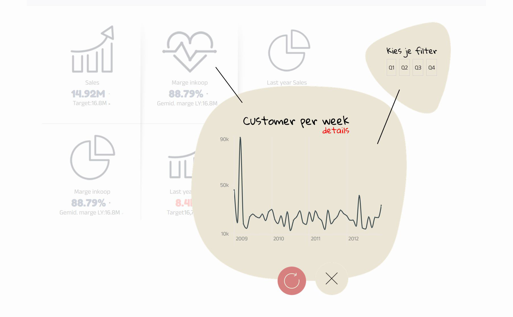 Naast het visuele ontwerp heb ik aandacht besteed aan performance, herbruikbare componenten en schaalbaarheid naar andere dashboards. Alles is ontworpen met het oog op gebruiksgemak én adoptie door de organisatie. Zo wordt data niet alleen bekeken, maar ook echt gebruikt.